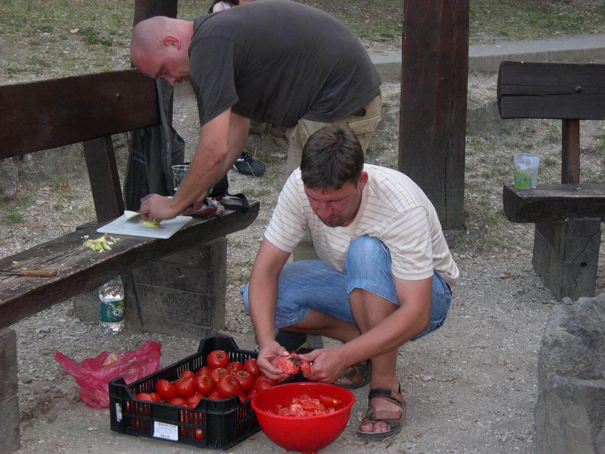 Este a Szépirodalmi Figyelő friss számát mutatták be, ezt követően a kulináris örömöknek hódolhattunk. A képen Szalai Zsolt látható paradicsomvágás közben