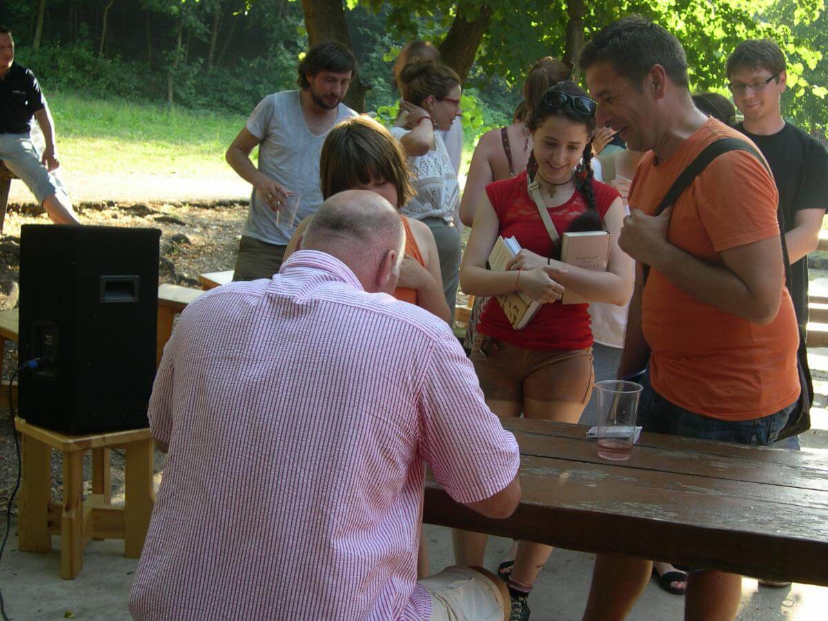 „Mindig az olvasónak van igaza” – állapította meg Péterfy Gergely Aegon-díjas író a Kitömött barbár című nagysikerű regénye kapcsán, amelyet a FISZ-tábor második napján mutattak be. A bemutatón kívül lakásszínházi előadáson és lecsókóstolással egybekötött lapszámbemutatón is részt vettünk.