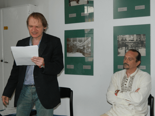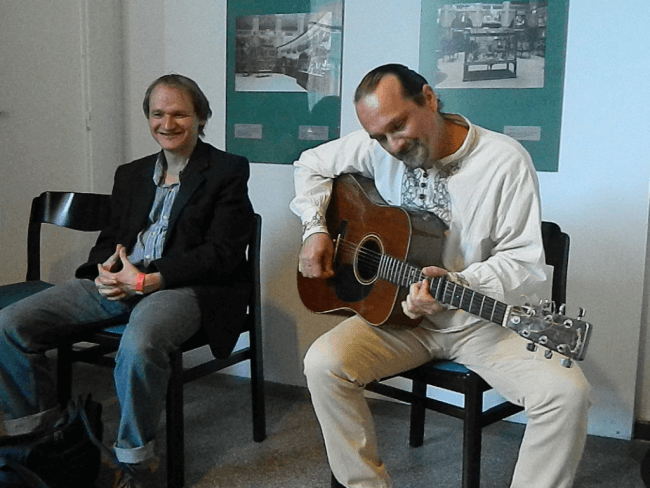 Hegyi Botos Attila és Payer Imre műsorával kitelepedtünk a könyvtár előterébe, így a dalok és a versek bezengték az Iparművészeti Múzeum jobb szárnyát