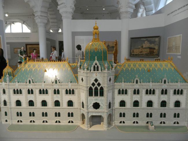 Ez pedig az Iparművészeti Múzeum makettje, immár a Lechner Ödön kiállításról. Az építész csodás szecessziós álmot valósított meg, melynek legapróbb szegletei is műalkotások. Mint megtudtuk az egyik tárlatvezetésen, az épületet hamarosan felújítják, erre az időre be is zár a múzeum