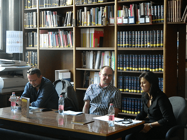 Szerzőnk, Szávai Attila (középen) a Palócföld folyóirat beszélgetésén