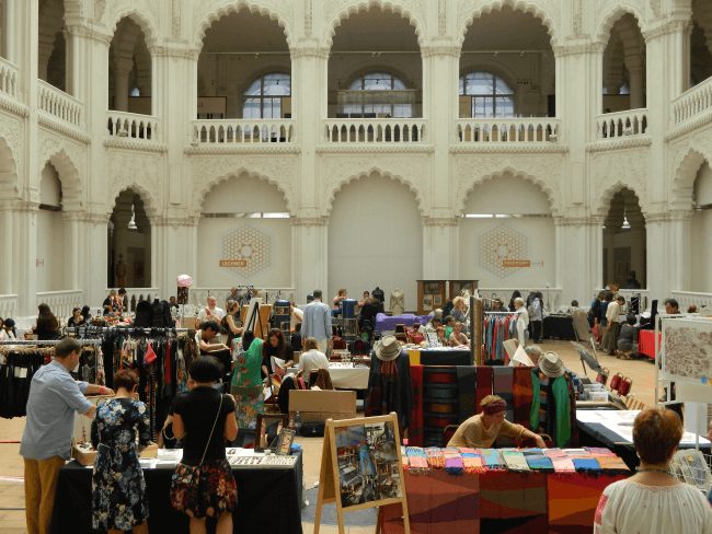 A pompás múzeumépület földszintjén kézműves vásár zajlott, szinte befogadhatatlan tarkaságban