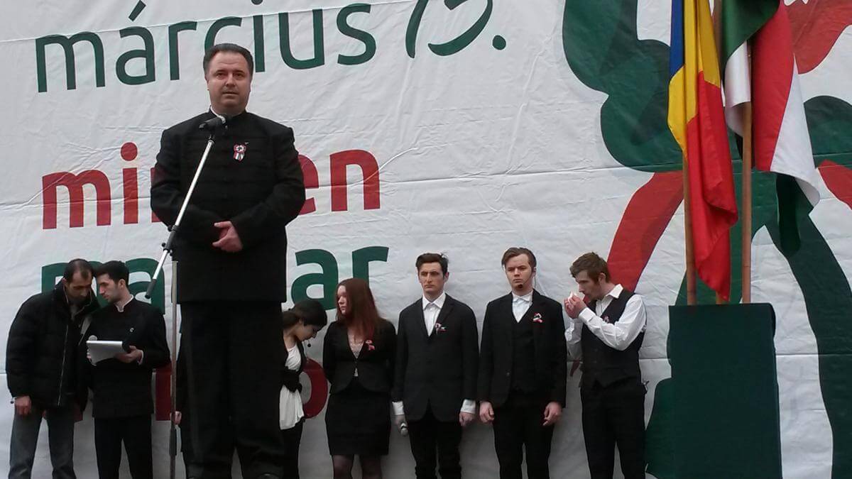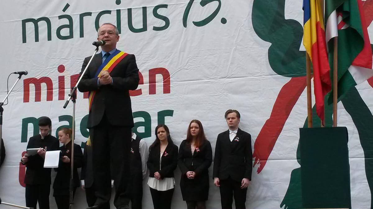 A közméltóságok, politikusok rövid ünnepi köszöntője is elhangzott, Vákár István, a Kolozs megyei tanács RMDSZ-es alelnöke beszél