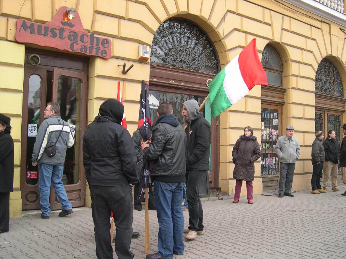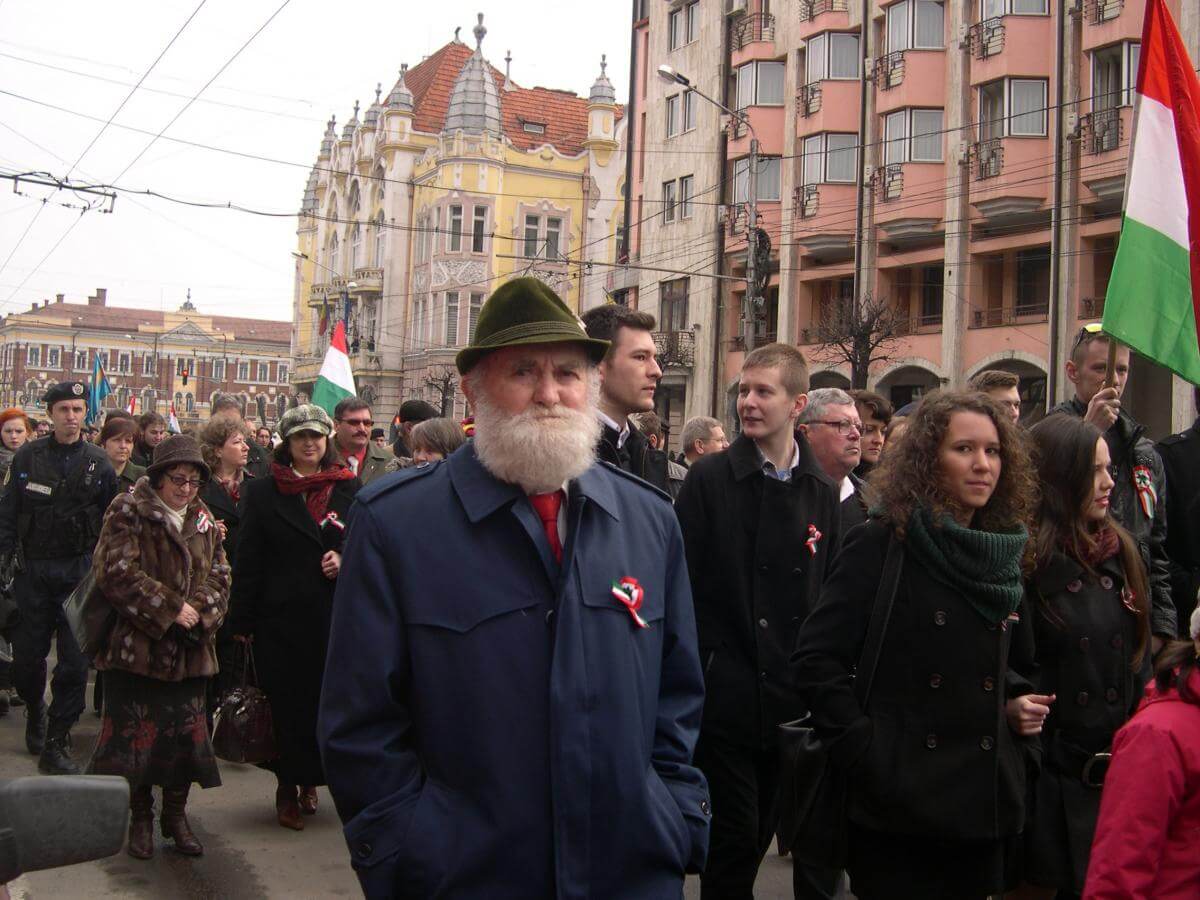 A Jobbik Magyarországért Mozgalom néhány képviselője is jelen volt Árpádsávos zászlóval, a vármegyés felségjelest szerencsére nem bontották ki...