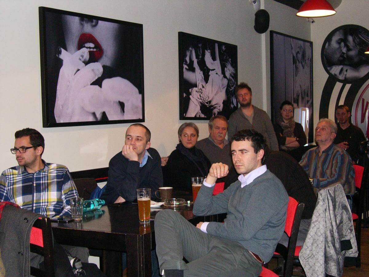 Az est vége felé kitértek az erdélyi és magyarországi irodalmi élet különbözőségeire is. A meghívott úgy látja, vannak ugyan szekértáborok Erdélyben, de nem jellemző, hogy ne legyen valamiféle párbeszéd az irodalmi élet szereplői között. Az alkotók nálunk is, akárcsak Magyarországon, gyakran egy-egy irodalmi folyóirat köré csoportosulnak, amelynek megvan a határozott arculata, de a lapok között van átjárás, nem egymást kizáró csoportok. Az erdélyi irodalmi életre szerencsére nem jellemző olyan fokú megosztottság, mint a magyarországira. Bizonyos feszültség, szembenállás kívánatos, ez egyáltalán nem baj, más kultúrákra is jellemző.