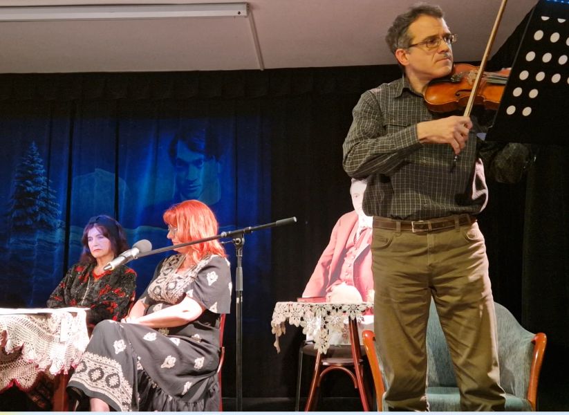 A versek közti szüneteket Angéla moderátori tevékenysége mellett ezúttal Füri Rajmund hegedűjátéka töltötte ki, aki Ady kedvenc nótáinak dallamait, valamint a tematikához illő korhű zenei darabokat idézte meg hegedűjén. Többek közt Ady Endre zeneszerző barátja, Papp Viktor visszaemlékezése alapján tudjuk, hogy a költő egyik kedvence „a lengyelek „Paganinije”, Wieniawski volt, tőle is elhangzott a Legenda című mű.