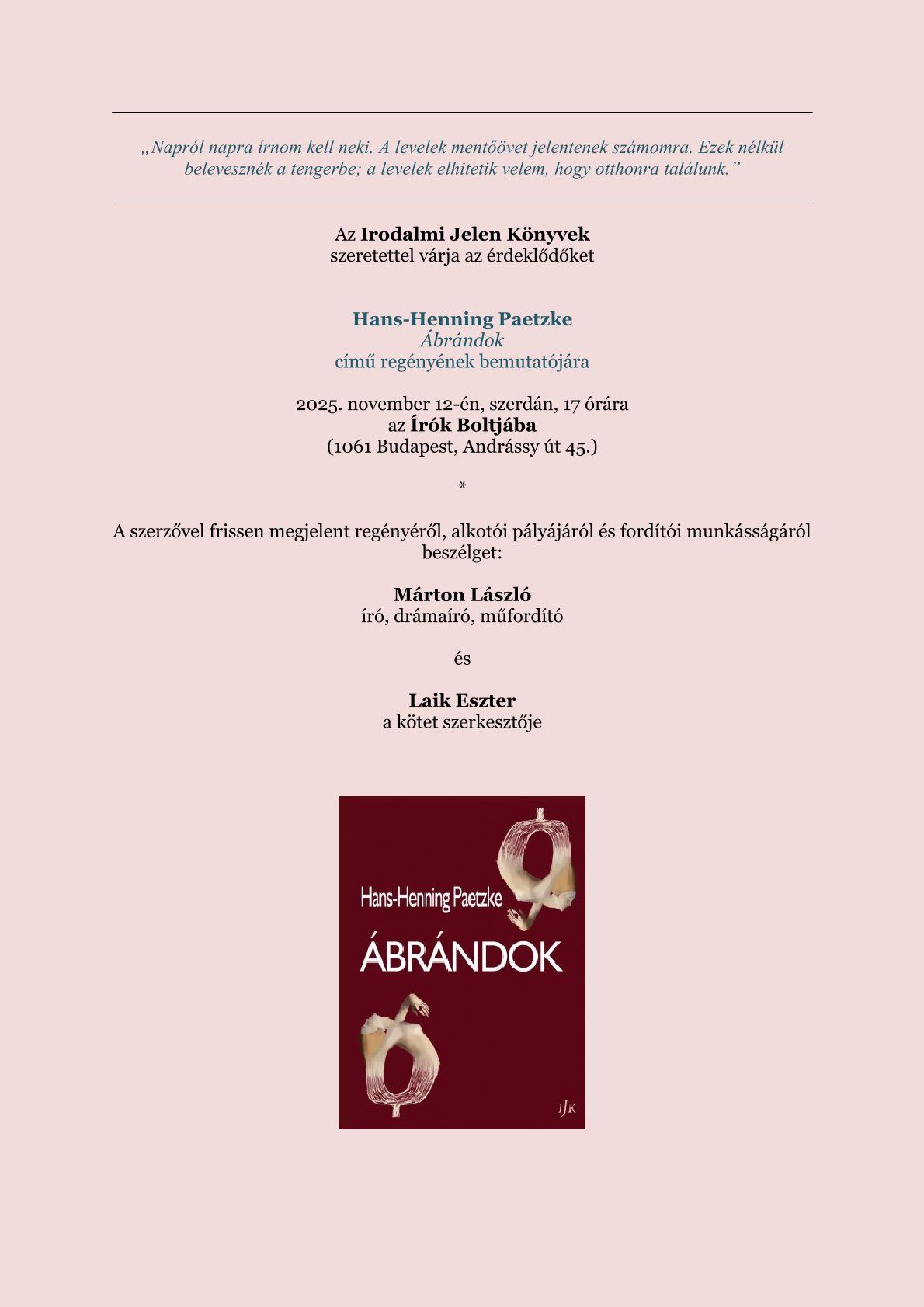 Hans-Henning Paetzke Ábrándok című regényét mutatja be az Irodalmi Jelen az Írók Boltjában