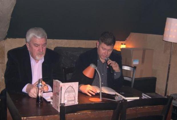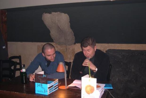 Lövétei Lázár László, idei Méhes György-nagydíjas költő Zöld című verseskönyvét és Potozky László, Méhes György-debütdíjas író Áradás című novelláskötetét mutatta be Fekete Vince az évzáró irodalmi fesztiválon a kolozsvári Bulgakov Kávézóban.