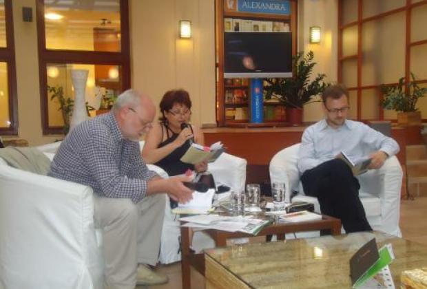 A Könyvhét első napját meg-megszakító záporok és széllökések elől egy fedél alatti könyvbemutatón találhatott menedéket az érdeklődő: Halmosi Sándor verseskötetéről az Alexandra Kávézóban beszélgetett a szerzővel Géczi János.