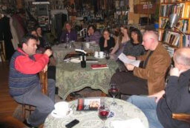 A Nyitott Műhely kerekasztalos termében foglalt helyet a szomszédos ország irodalmáról beszélgető előadói kör és közönsége, ami még családiasabbá varázsolta az estet.