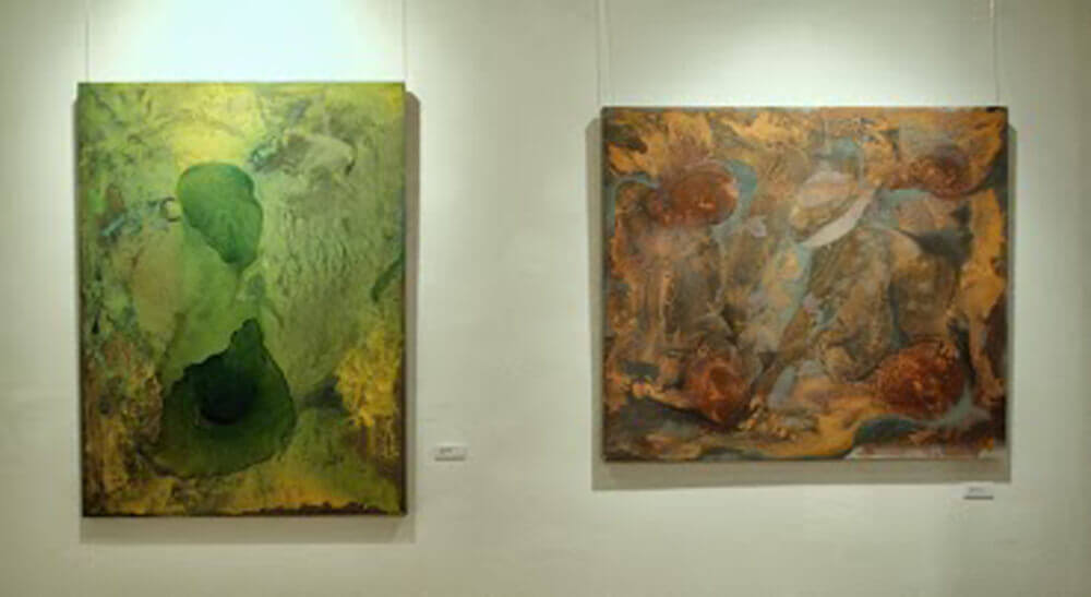 A művek friss szelleme hat rám igazán. Bartus Ferenc képei – Felszíni fejtés, 2012, Vasércbányászok, 2013, „Beágyazódva”, 2013 – egy eltűnt, elsüllyedt világról vallanak, de Verespatakra gondolva nagyon is a maihoz szólnak. A színek bronza, sötétbarnája, rozsdás zöldje egy lehetetlen élet felszínét tárja elénk, egyben a túlélés mikéntjét is felveti, meddig lehet fennmaradni és hogyan. A létezés lenyomatát látjuk, a mélyet, amely már kövület. Számunkra kezdet, eredet, a létezett számára a vég.
