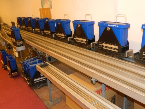 Ez már a telelift gépterme, ami egy igazi forgalmi csomópont, mint látható. Van, ahol a Vidámpark hullámvasútjhára emlékeztet a pálya. A fekete képernyő-szerű lapok a mágneskódokat olvassák le: ott ugrik át a váltó, aszerint, hogy mi az úticél.
