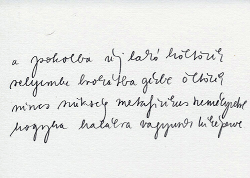 1990. február elsején halt meg a modern kori magyar költészet egyik legfontosabb alakja, Sziveri János. Beteg volt, de csak a teste. A költészetét a fájdalom egyre kristályosabbá tette. Minden szava megtalálta a végső helyét és jelentését, amikorra elfogyott a világ körülötte. Ezeket a szavakat másolgatjuk s próbáljuk a magunk rendetlen rendjébe illeszteni - tétován, és gyakrabban értetlenül, mint értve. Hiszen nem a vers javít mirajtunk; magunknak kellene a költészethez hozzánemesedni. Vidra Réka lemásolta, lerajzolta a Bábelt. Minden szakasz egy-egy cédula. A kézvonás ad értelmet a versnek, s új életet a költőnek. A legtisztább értés, az elfogadás, a mindannyiunkban élő gyermeké. (M.E.)