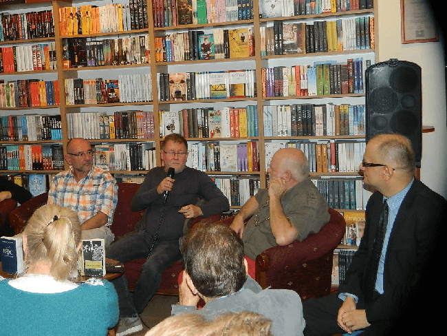Az Örkénybe megérkezvén épp elcsíptük Lackfi János mesedélutánját, a Dombontúli mesék bemutatóját, ami önmagában is impozáns vállalkozás: tizennegyedik részénél tart az író-költő mesesorozata a dombontúli lakóparkról, amelybe mindig új és új lakó érkezik. A meséket Horváth Ildi illusztrálta, és Lackfi közönségét, majd dedikáltató olvasóit elnézve megint csak megállapíthattuk, hogy nincs nála határ gyermek- és felnőtt olvasótábor között, itt is jó sok felnőtt állt sorba hozzá, hogy aláírassa valamelyik könyvét. A tombolát követően (könyvcsomagokat nyerhettek a szerencsések), gyorsan átalakították a pódiumot a Noran Kiadó szerzőinek műsorához, a könyvesboltba pedig betoppant Vörös István rendkívül helyes uszkárjával, Mézessel, aki olyan fegyelmezetten nézte végig a műsort, hogy kalapot le előtte.