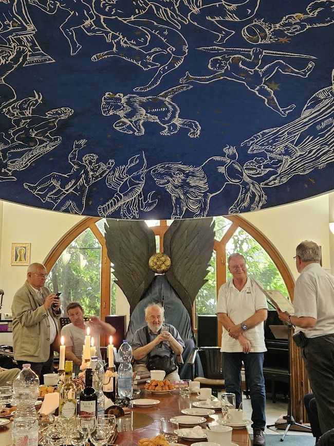 Makovecz Imre és barátai teremtettek itt maguknak egykor nemcsak építészirodát, hanem otthont is – mutatta be az est helyszínéül szolgáló csodálatos épületet a Magyar Művészeti Akadémia sajtófőnöke, Juhász Judit. Több mint húsz éven át ugyanis csütörtökönként gyűltek össze itt a korszak legkiválóbb festői, építészei, zenészei, írói, költői, hogy a szalonokon egymást inspirálják, és jobban megismerjék a másik mindennapjait, művészetét. A rendszeres vendégek közé tartozott Lászlóffy Aladár is – már csak ezért is adta magát, hogy az est nyitánya Böszörményi Zoltán El nem küldött levél Lászlóffy Aladárnak című versének két versszaka legyen. „Nem volt fiad, fiad lehettem volna! / Mennyit álmodoztam erről az eszmék barikádjain…” – írja Böszörményi, és ahogy az est folytatásából kiderült, szellemi értelemben mégiscsak megvalósult ez a fiúság, amelyben nem feltétlenül csupán maga Lászlóffy töltötte be az atyai szerepet, inkább az egész közeg, ahonnan az ifjú Böszörményi elindult. Meghallgathattuk még a költőtől A vers, a Lábatlan idő, a Reditio és az Egy álom alkatrészei című költeményeket is.