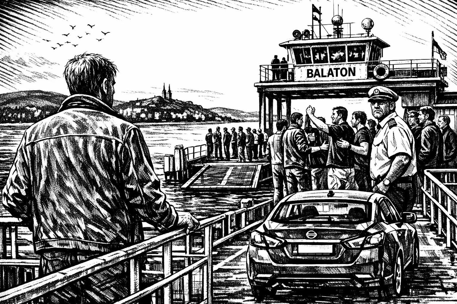 Jólesett volna egy kávé, de nem volt büfé a hajón. Igaz, a menetidő alig több mint negyedóra, azalatt felszolgálni sem lehet, nemhogy kényelmesen elfogyasztani egy italt. Még egy feketét sem. Bánta, hogy kulacsát a kocsiban hagyta, így vize sem volt, lemenni meg nem akart, illetve nem volt biztos benne, hogy nem szegne-e szabályt, ha a hajó mozgása közben a kocsijában kezdene matatni. Nyilván vannak szabályok, amelyeket szigorúan be kell tartani, hiszen a komp veszélyes üzem. Nézelődéssel próbálta elütni az időt, megfeledkezni a reggelente egyre kínzóbban feltörő szomjúságérzetéről, de a víz s a túlparti táj látványa valahogy nem azt nyújtotta, amire ebben a percben vágyott. Leginkább az egyenletesen sikló hajótest, az alig hallhatóan működő dízelmotorok kötötték le a figyelmét, szinte komfortérzettel töltve el a majdnem kétórás autós zötykölődés után, no meg a háttérben a kezdetben visszafogott, ám ahogy elhagyták a kikötőt, egyre emelkedettebb hangerővel társalgó fiatalok hangoskodása, ahogyan otthonosságukat, bennfentességüket igyekeztek bizonygatni. Mindez nem zökkentette ki a nyugalmából, de zavarta kissé, így elfordította róluk a tekintetét, és a vízre bámult.