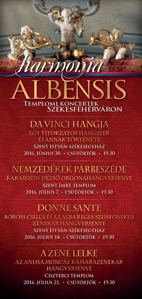 Július 14-én a megújult Szent István-bazilikában a Donna Sante című esten lép fel Boross Csilla operaénekes az Alba Regia Szimfonikus Zenekarral, a Primavera Kórussal, az Alba Regia Vegyeskarral, a Vox Mirabilis Kamarakórussal és az Ars Musica Kórussal. A koncerten Medveczky Ádám vezényel.