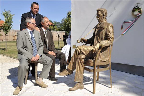 Gárdonyi Géza születésének 150. évfordulója alkalmából felavatták az író egész alakos szobrát szombaton a szülőházánál Gárdony-Agárdpusztán.