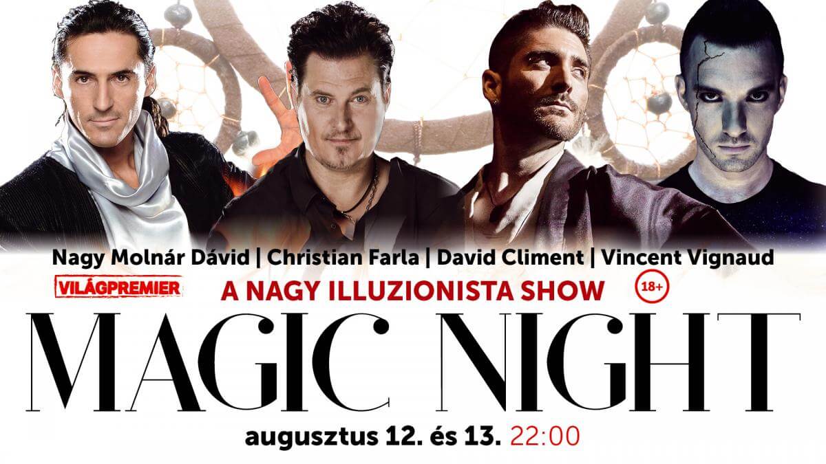 Egy Magyarországon egyedülálló műfajú, látványos magic show világpremierrel folytatódik a Budapesti Nyári Fesztivál nagysikerű programsorozata. Augusztus 12-én és 13-án négy világhírű illuzionista érkezik Budapestre, hogy lélegzetelállító mutatványaikkal elkápráztassák a Margitszigeti Szabadtéri Színpad közönségét. A 22 órakor kezdődő attrakció a varázslat és borzongás világába vezet bennünket. Az előadás 18 éven aluliaknak nem ajánlott!