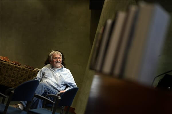 Oravecz Imre író, költő, a 2016-os Aegon Művészeti Díj nyertese az irodalmi pályázat eredményhirdetésén az Aegon Magyarország fővárosi székházában 2016. április 13-án. Oravecz Imre Távozó fa című verseskötetéért kapta az elismerést
