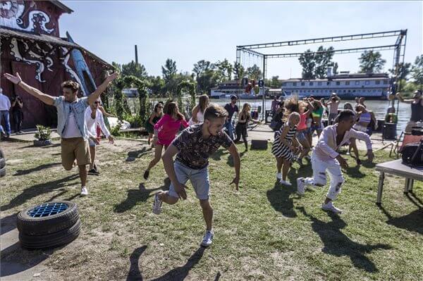 Táncos jelenet a Pappa Pia címmel készülő zenés romantikus film forgatásán a fővárosi Gubacsi hídnál