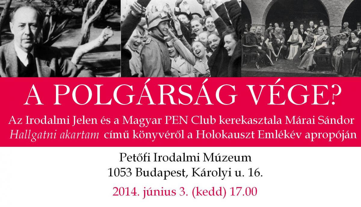 „A polgárság vége? – Történészek és irodalmárok kerekasztala Márai Sándor Hallgatni akartam című könyvéről a Holokauszt Emlékév apropóján”