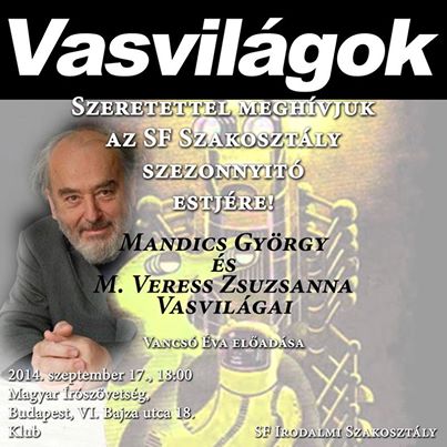 A SF Irodalmi Szakosztály estje a Magyar Írószövetségben szeptember 17-én 18 órakor.
