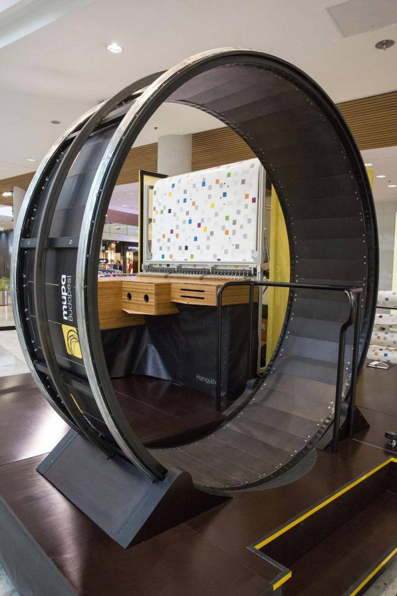 Közel egy év tervezés, fejlesztés és építés után 2015. novemberében mutatkozott be a nagyközönség előtt a világ legnagyobb interaktív zenedoboza. A Müpa Hangjáték hasonlít a klasszikus zenedobozokhoz: a vállalkozó kedvű látogató egy óriási mókuskerékben gyalogolva tudja megszólaltatni a dallamot, amely a hangzófésűk és a kézzel lyuggatott dallamponyva segítségével csendül fel.