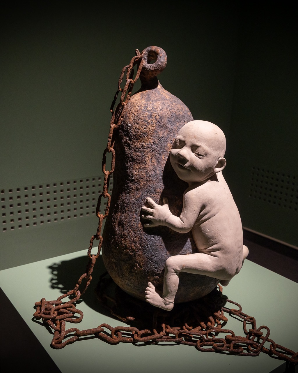 Benczédi Ilona szobrászművész egy más világot mutat nekünk. Berobban a látvány. Kiállításának címe: Biztonságban? Bomba van a teremben. Senki sem tudja, nem robban-e fel. Ráadásul pincében vagyunk. Óvóhelyen? Kollektív szorongás, elfojtott félelmek? A bombába kapaszkodó kisgyerek alakja a védelem és a fenyegetés paradoxona. A biztonság itt nem állapot, hanem illúzió. A gyerek alakja mégis felvillantja a remény lehetőségét, mert az ölelés gesztusával is operál, és ha levesszük tekintetünket a sokkoló helyzetről, és szétnézünk a szépen megvilágított kiállítótéren, mosolyogni is tudunk. Figurális kisplasztikákat látunk – végre emberi figurákat.