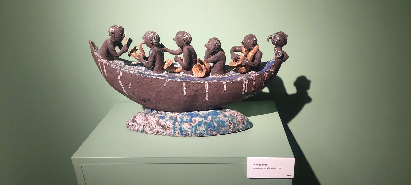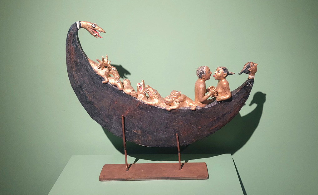 A csónak visszatérő forma (Holdbéli csónakos – 2007, raku; Hangzavar – 2015, zománcozott kőcserép; Viharban – 2018, zománcozott kőcserép; Noé bárkája – 2010 körül). Mindnyájan benne ülünk! Egyszerre menedék és veszély. Aki benne ül, úton van, de nem tudja, hová érkezik. Az utazás itt nem célirányos, hanem egzisztenciális. A csónakok metaforák az önállóság, a kockázat és az álom és valóság kettősségére. A nyelvet öltő figura Noé bárkájában ironikusan bontja le a megmenekülés narratíváját: a túlélés nem magasztos, hanem esendő.