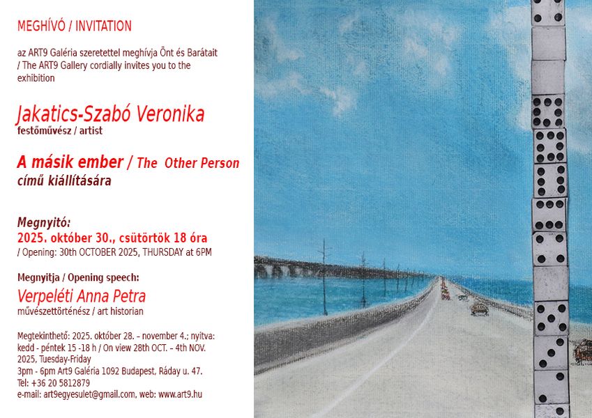 Jakatics-Szabó Veronika A másik ember című önálló kiállításának megnyitóját rendezik az ART9 Galériában