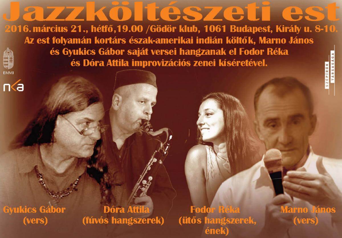 Az est folyamán kortárs észak-amerikai indián költők, Marno János és Gyukics Gábor saját versei hangzanak el Fodor Réka és Dóra Attila improvizációs zenei kíséretével.