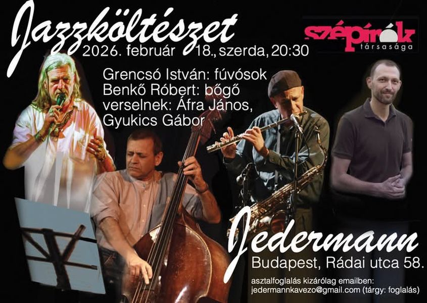 Jazzköltészeti estet rendeznek február 18-án a Jedermann Kávézóban