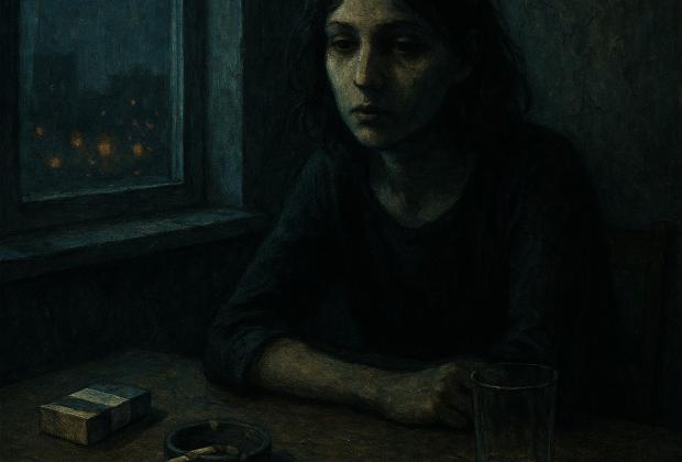 Nehézkesen indultam meg jobbra, az ajtó felé, egyszerre haladva az öregemberrel, így pont ugyanabban a pillanatban értünk a repedéshez. Az idős bácsi mintha éveket öregedett volna. Járása görnyedtebbé vált, göcsörtös kezében egy botot szorongatott, ruhái koszosan, szakadtan lógtak rajta, az utcát vöröses fény derengte be, a házak helyén romok álltak.