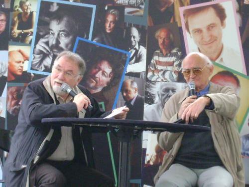 Szakolczay Lajos irodalomtörténész néhány autogram és telefonszámcsere után elégedetten telepedett le Czakó Gábor mellé.