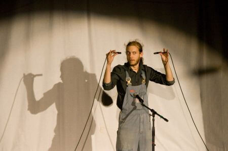 A hangszerkíséret és a tánc fokozatos összehangolódását olyan fényjátékok kísérték, amelyek az állandó változásban lévő anyag, a folytonos átalakulás illúzióját keltő fény mozgásával a metamorfózist képszerűsítették. A metamorfózis az archaikus mozgásszínházból fekete öltönyös figurákká alakuló Nagy Józseffel és Cecile Loyerrel folytatódott, akik viszonya az elnyújtott diszharmóniából az egymásra találásig terjedt. A férfi talán udvarolt, a nő talán visszakozott, a férfi unikornist és angyalt teremtett (alig láthatót), majd a bábjátékkal a képlékeny forma átalakult ki tudja, mivé, messze voltunk.