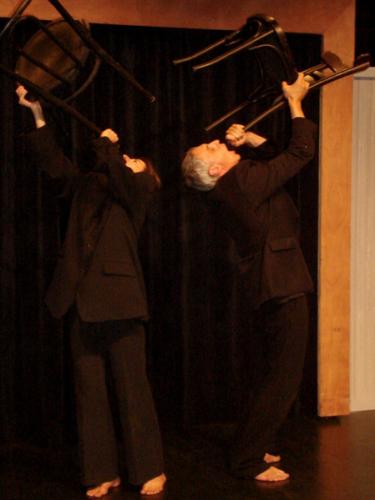 Az ember már nem elég, újabb tárgyak kerültek a színpadra: pálcikák, csuklyák és székek. Tárgyak, melyek funkciója változott: a szék kulaccsá, majd végül az egymásra találás helyszínévé, ahol megpihenhetett férfi és nő a tánc után, ahol megpihenhetett és megnyugodhatott a néző, mert hosszas agónia után megkapta a prospektusban ígért Igaz Harmóniát.