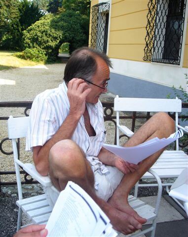 Ma esik az eső, tehát a terasz kilőve. A könyvtárban tartjuk utolsó szemináriumunkat Marnoval, egyetlen jelző jut róla eszembe: aranyos. Ma is nagy energiákat mozgósít az elemzésekhez, irigylem érte. Közben a huzat több ablakot csuk be önkényesen, most már értem, miért van ötféle üveg az ajtóban. Kurtán-furcsán lett vége az óráknak, ebédnél aztán ő is ezt erősíti meg. Én reggel összepakoltam mindenem, sajna tovább nem tudok maradni, lassan járok körbe mindenkit, köszönök el, és ólomléptekkel megyek a kocsi felé, zuhogó esőben. Maradnék, de megígértem, hogy meglátogatom a barátnőm Aligán, mennék is, de furcsán az az érzésem, hogy valamit itt hagytam, marasztal, visszahúz. Jövőre megkeresem.
