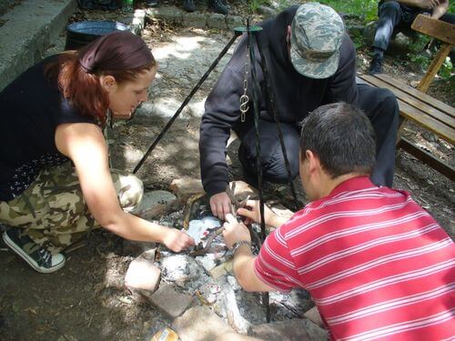 Büszkén tekintettem a fellobbanó ősi elemre, mit hajdanán Prométheusz, s most én ajándékoztam az emberiségnek. A tűzre bogrács került, a bográcsból pedig finom étel a tányérokra. Hmm… ez így erős, finom étel került a műanyagpoharakba és fémbögrékbe. A jóllakott bendőkbe Vákuumvarjú jóvoltából Unikum is csordogált. És megszólat volna egy lágy gitárszó, persze csak akkor, ha Bassplayer nem hagyja otthon azt a k…a gitárt, hogy Drumatic nem cipelte fel a dobot, még csak lenyelem, de ezt!