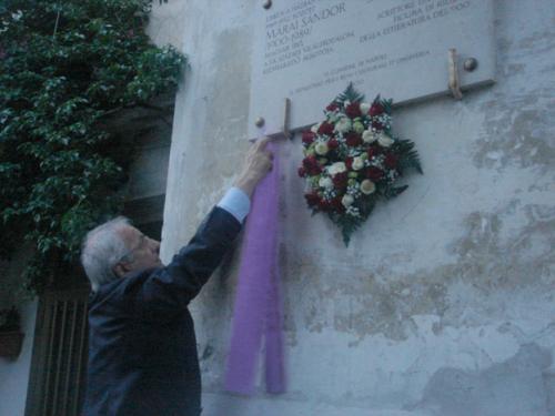 Amedeo DiFrancesco nápolyi professzor, Dorin Tudoran Amerikában élő román költő és Szőcs Géza az Irodalmi Jelen szerkesztősége nevében koszorút helyeztek el Márai Sándor possillipói lakásának falán.
