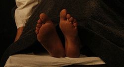 A lány tétován engedelmeskedik, feltárja a beteg előtt a melleit.