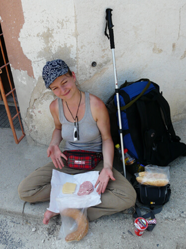Ebéd végére megérkeztek a felhők is, nekünk viszont még ott van a Gulács, utána a Badacsony, hogy a túlsó felén leereszkedve Badacsonytördemicben éjszakázzunk. Indultunk a hegy felé a műúton, de mire az elágazáshoz értünk, ahol föl kell kanyarodni, teljesen beborul az ég. Itt két lehetséges folytatása volt a történetnek: fölmegyünk a Gulácsra, ahol valószínűleg olyan vihar szakad ránk, amit este a Híradóban szoktak mutogatni, vagy lesétálunk a műúton Badacsonytomajba, és akkor valószínűleg nem is történik semmi. Végül az utóbbit választottuk, és minden úgy történt, ahogy számoltuk, a Gulács kimaradt.
