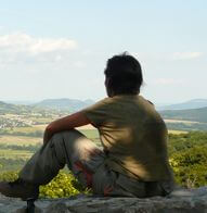 Elég nagy kitérő Zalaszántó felé, de ha időd engedi, mindenképpen érdemes oda fölmászni. Jó három napi járóföldre ellátni innen: látszik a sztúpa, ami a következő hét egyik első állomása lesz, látszik még a Tátika vára is, és persze Zalaszántó, itt a hegy lábánál. Azért lefele menet nem tűnik olyan közelinek, ráadásul elég meredek, bokaficamítós terep. A vár viszont ezt is megéri. Teli van jobbnál jobb zugokkal, és három oldaláról is olyan kilátás nyílik, hogy az ember szinte odagyökerezik fotózni és ábrándozni.