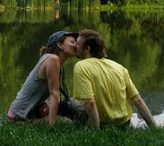 Hamarosan megjött Enci is, és leült a tó túlsó végén. Kiderült, hogy Réka is megjön mindjárt, de a találkozó előtt még muszáj volt ülni egy kicsit, nehogy leessen a lábunk, vagy kitörjön valami botrány. Borzasztó hosszú nap volt ez, és még legalább három és fél kilométer volt hátra. Erre is itt jöttem rá a tóparton. Bélapátfalva már rendben van, megjöttünk ide, csakhogy a Telekessy Vendégházban alszunk ma, ami kint van a város túlsó szélén. Ez a következő pecsételő hely Bélapátfalva után.