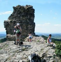 Megköszöntük a felvilágosítást, aztán még vagy húsz percet beszélgettünk, mert már a férfitól se volt könnyű szabadulni, de egy idő után a felesége is kijött. Utána szépen elpakoltuk a térképet és a jelzésekre bíztuk magunkat: egy friss ösvény csak nem lehet annyira keskeny és rosszul jelzett, hogy ne találjunk el rajta a szomszéd faluba. Valóban megbízható út volt, csak nagyon szenvedtünk a melegben.