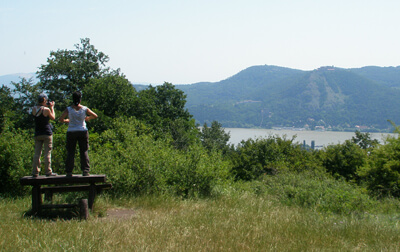 Mi is a pálya útjait követtük, mert a Kék elveszett ezen a helyen, ami önmagában nem olyan nagy baj. Inkább az volt kínos, amikor ismét kereszteztük a saját ösvényünket, és (velem az élen) elindultunk az ellenkező irányba. Szerencsére a többiek hamar bojkottálták a döntést. Egyszerűen képtelen vagyok két egyformának tűnő lehetőség közül kiválasztani a jó irányt, az én tudományom a barátkozás alkudozással egybekötve. Miután megérkeztünk, kényszerítettek is rá a háznál ülve a reggeli kávém mellett, mert ma Visegrádon alszunk. Ezzel pedig valószínűleg gond lesz. A nagy turistás helyekkel az a baj, hogy minden van, ráadásul sok, ettől a kacatok borzasztó olcsók lesznek, a szállások meg igen drágák. A lehető legrosszabb helyzet, mert a lányok fogékonyak a kacatokra, szállás meg kell, ráadásul kezdett nyomni a forróság, úgyhogy jól meg kellett tervezni a bevonulásunkat Visegrádra. Végül második próbálkozásra sikerült szállást foglalni, valóban a 3000Ft/fő/éj álomhatár fölött, bár nem olyan tragikusan sokkal. Visegrádon ne is álmodj olcsóbbról! Később aztán visszakönyörögtük háromezerre, de az igen hosszú és kemény művelet volt, ha tudsz jobbat találni, akkor minden elismerésem. Ami Törökmezőt illeti, ez a gyerek-turistás Kánaán, olyan az egész, mint egy nagy, erdei bentlakásos iskola. Az egyetlen "felnőtt" akit láttam, a pultos fiú volt, az is legfeljebb valami korombeli. Az egész hely egy rajzokkal meg meseposzterekkel teliplakátolt gyerekbirodalom, és láthatóan népszerű, mert az ebédlő fala végig volt rakva oklevelekkel, amiket a mindenféle helyekről idesereglett gyerekek írtak és rajzoltak az elmúlt években.