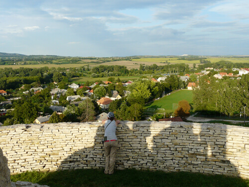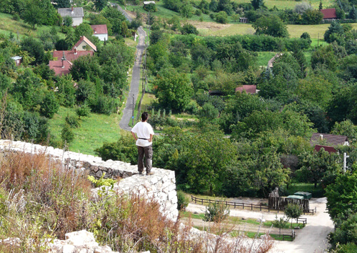 Ettől a helytől már csak egy esőt és úgy három kilométer utat kellett kibírni, aztán föl is értünk a Csókakői várromhoz, ami a következő panorámás ebédlőhelyünk lett.