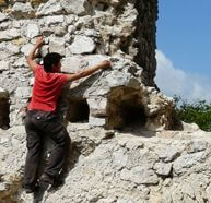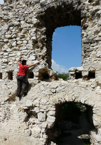 Egyébként igen szerencsések voltunk ma, mert a legmelegebb órákban foltos felhős időnk volt, viszont ha kilátásra bukkantunk, mindig kiderült az ég. Szokás szerint vadul fotózni kezdtem, Réka pedig elindult megmászni a vár lehető legveszélyesebb falait.