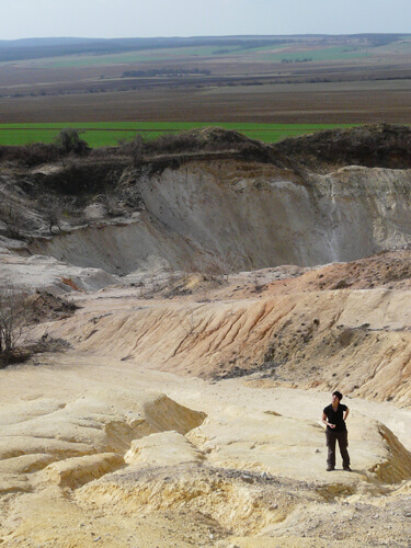 Eltettem a fényképezőgépet, mondván, hogy megvolt mára a látványosság, és szépen továbbindultunk Bakonykúti felé, megüldözni az utolsó buszt. Ma estére Máté szerzett szállást Székesfehérváron a nagynénjénél, így csak az oda utat kellett megoldani, szállást és vacsorát ma igazán elsőrangút kaptunk. A kamerát ellenben ahogy eltettem, szedhettem is elő, mert a hátralevő szakasz is telis-tele volt felnőtt játszóterekkel. Előbb a szokásos út, mező, erdő, utánuk egy olyan mező egy dombtetőn, ahol akkorát taszított rajtam a szél, hogy visszatántorodtam. Végül a domb túlfelén mészkőbányát találtunk.