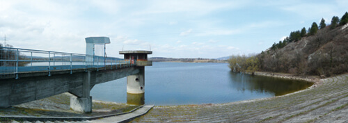 Micsoda vidék! Minden fél kilométerén új mutatvány! Gaja-szurdok, először a sziklákkal, utána kilométereken keresztül a patak, aztán hosszú séta a víztározó partján, hol mellette, hol az üdülőtelep pici kuckói között... Úgy lekötötte a figyelmemet, hogy a Becsali büféig (pecsételőhely) fel sem tűnt, hogy ma még nem ettem. Itt akartuk elfogyasztani az első ebédet, de arra van egy jobb hely. Kedves volt ugyan a néni (szerintem mi nyitottuk rá először az ajtót aznap), de végül is tovább mentünk, amíg meg nem találtuk a gátat. Ez már mindjárt más, ilyen helyen még nem ettünk ezelőtt.